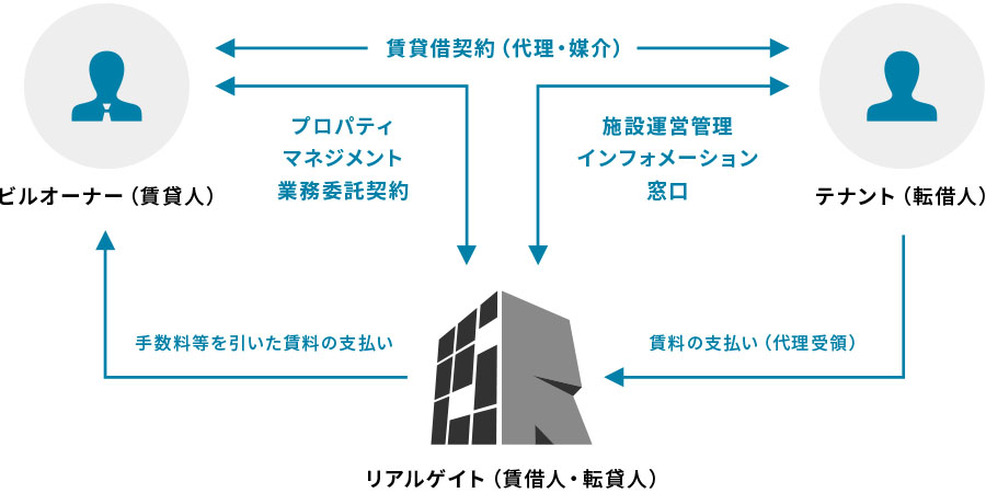 リアルゲイトが事業主となって、リノベーション工事・リーシング(転貸)・テナントの運営管理を実施。運営管理手間を軽減することが可能になります。