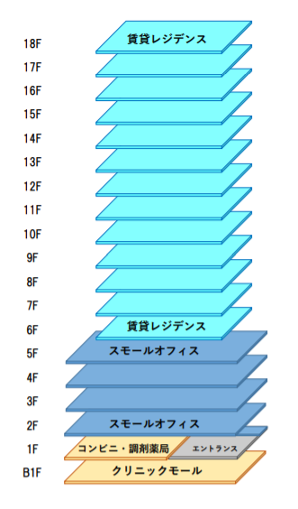 当プロジェクトは、ビジネス・住まいの環境として優れた立地特性から、新しいビジネスや生活様式を創出する「住」「職」「医」「商」からなる複合賃貸レジデンスです。眺望の優れた6~18階を賃貸レジデンス、1~5階の延べ約700坪のフロアはスモールオフィスを中心としたワークプレイス、1 階と地下には入居テナントや地域の利便施設となるコンビニエンスストア、クリニックモールを配置し、各施設が相互に連携する計画で、2022年11月に竣工予定です。