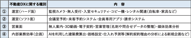 弊社のDX化は主に四つのカテゴリーに分類できます。(表1参照)
