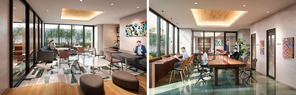 1階に55.71㎡~97.08㎡の6区画を計画。施設の顔となるスタイリッシュなカフェやサービス店舗を誘致予定。当施設のオフィスワーカー・レジデンス入居者だけでなく、近隣のワーカーや住民・来街者との交流を生み出す、街に開かれたオープンなスペースとなる。