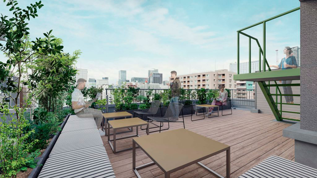 サンケイビルが展開するゲストハウス型ホテル&ホステル「GRIDS」シリーズであった2棟を、ラウンジ・会議室・スカイテラスを共用部に併設した、クリエイティブオフィスへコンバージョン。