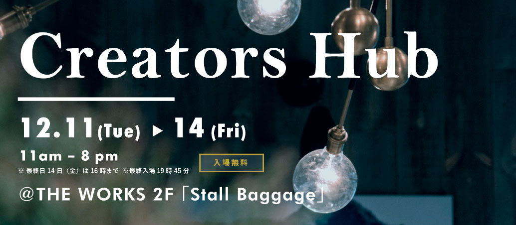 「ORDERMADE TOKYO」の公開に伴い、リアルゲイト物件に入居するクリエイティブカンパニー3社「 HUESPACE INC. 」「 LINE-INC. 」「 Smokey Sunday 」とコラボレーションし実現したローンチイベント「Creators Hub」を、12月11日(火)~14日(金)の4日間限定で開催します。