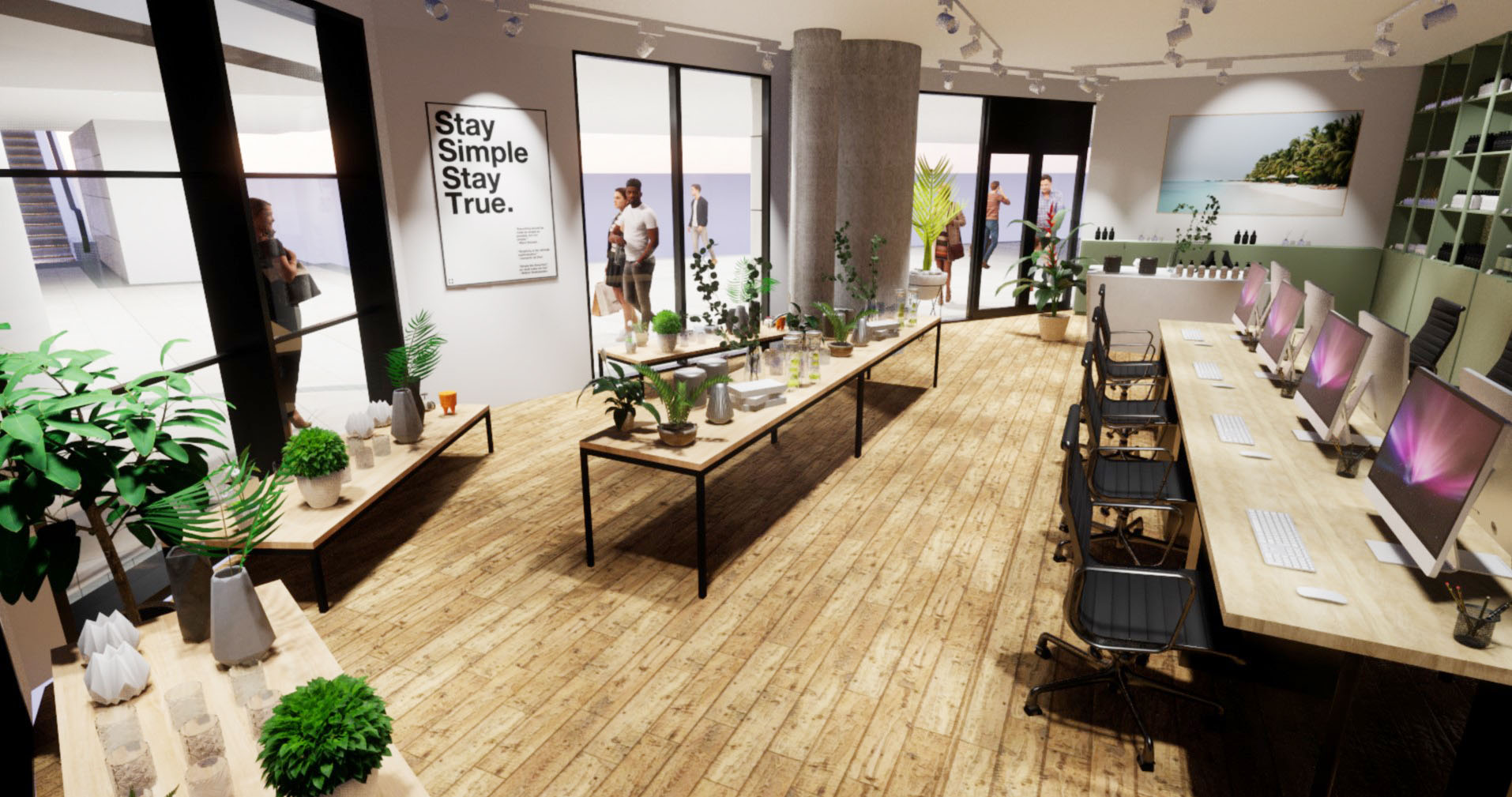 スカイウォークを出てすぐの視認性が良い場所に位置する短期間型のショップ&ショールームスペース。シンプルな内装とスケルトンの高い天井は、様々な業種のプロモーションに有効な空間。交流型のワークショップやクリエイティブな新商品、サービスを扱うポップアップストアとして利用可能。