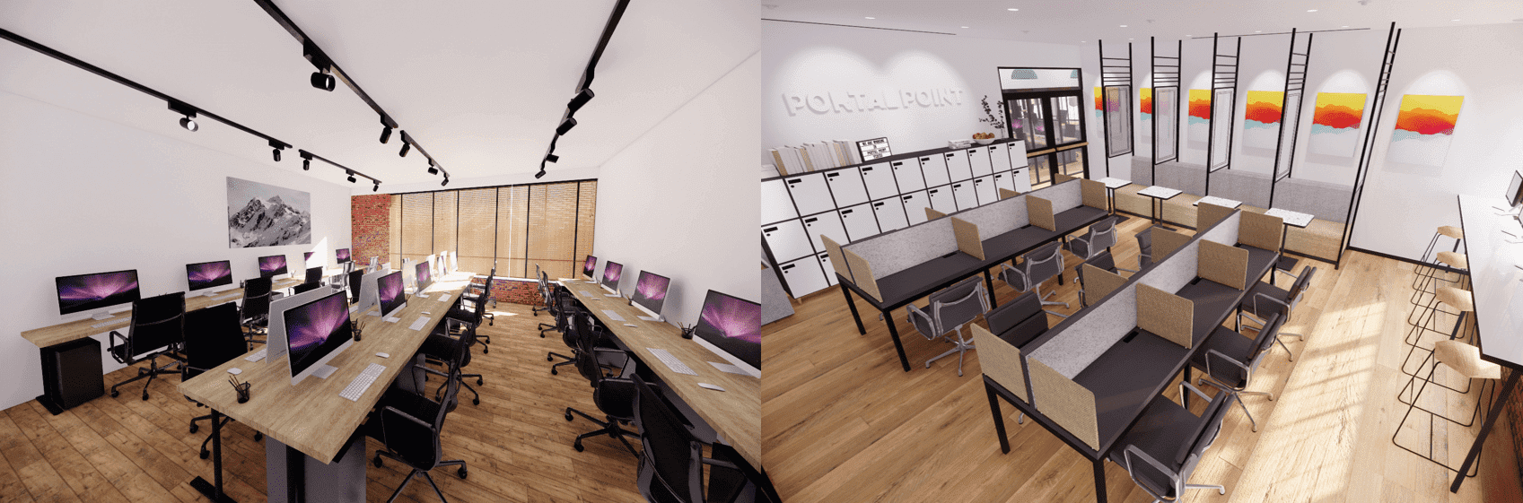▲ プライベートオフィス イメージ ▲フリーデスクスペース イメージ