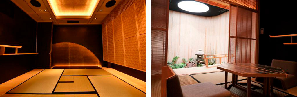 地下に佇む、和室(ドローイングルーム)はモニター設置済みで、プレゼンテーションや要人のおもてなし等、普段使いとは異なる局面でも利用可能。(WEB予約/別途有料)