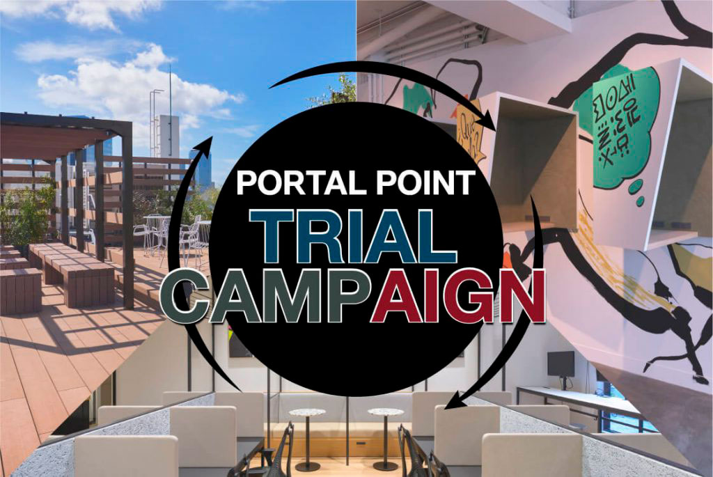PORTAL POINT原宿・渋谷・恵比寿の3施設全てを2週間無料で利用でき、フリーデスクスペースや共用スペースを気軽にトライアルできるもの。(1社5名まで)