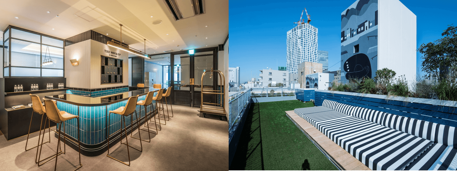 ▲「THE MOCK-UP」のロビーと「PORTAL Apartment & Art POINT」のルーフトップ