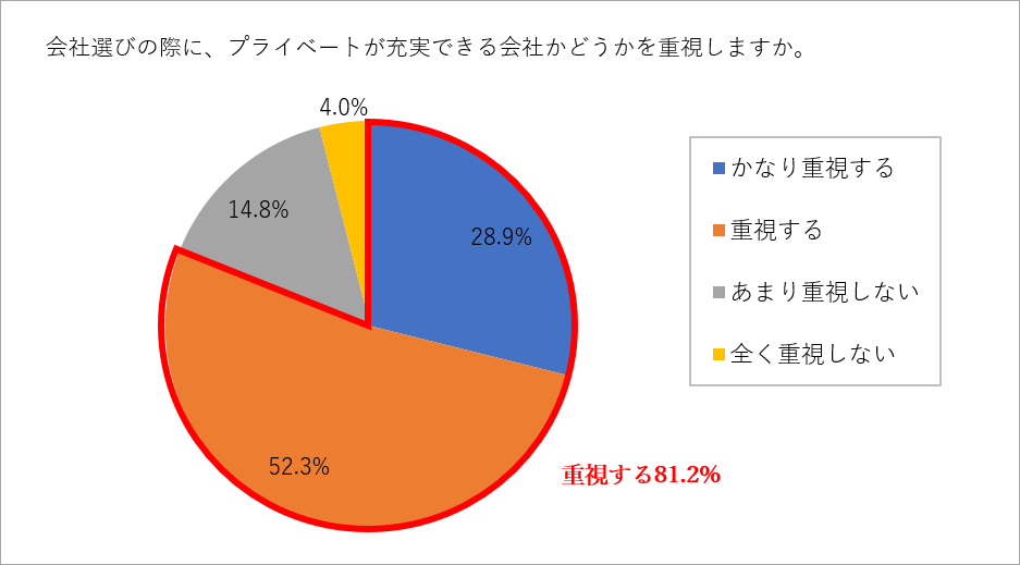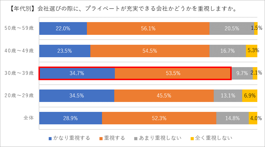 8割がプライベートを充実できる会社を選び、30代は約9割と最多