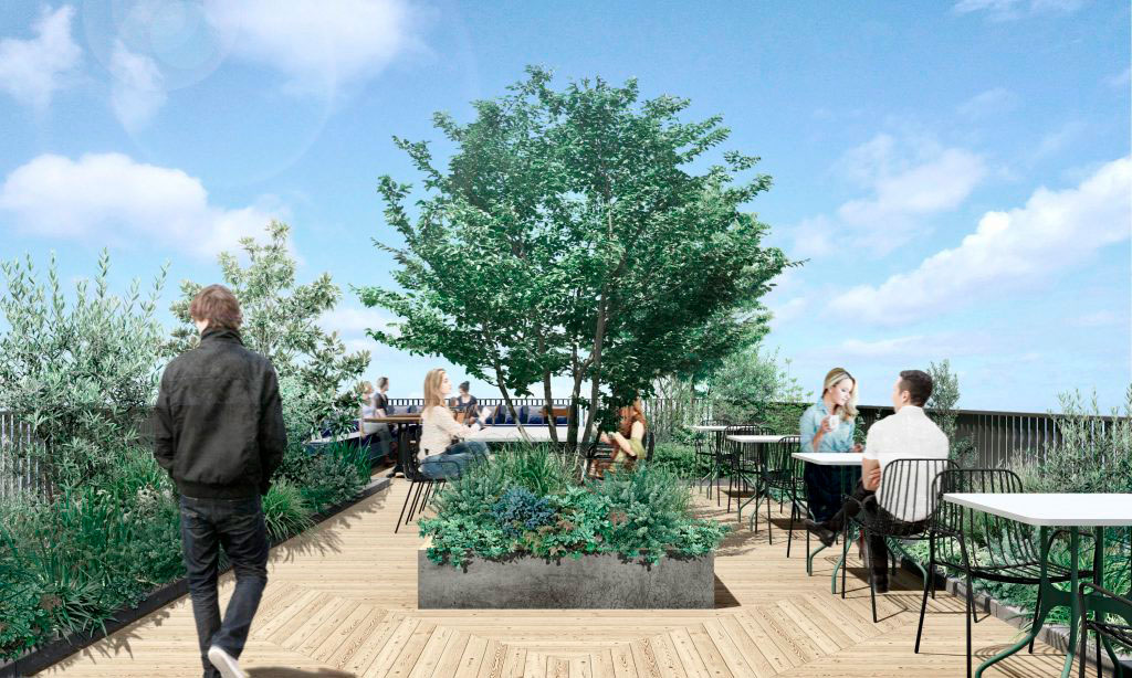 六本木エリアを360度見渡せ、摩天楼を一望できる開放感抜群のルーフトップテラス。豊富なグリーンとウッドデッキで囲われたWi-Fi完備の心地よい空間は、リフレッシュスペースとしてだけでなく、オープンエアのワークスペースとしてもご利用いただけます。
