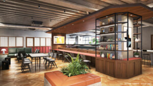 駅舎から繋がる巨大広場に、オフィス、商業施設、ホテル、外国人向けマンション、文化交流施設など。そんな街のヒト・コト・モノの発信中心地 =「台風の目」となる1棟リノベーションのフレキシブルスタイルオフィス。