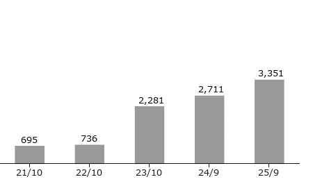 2021年9月14日開催の第13期臨時株主総会決議により、決算期を10月31日から9月30日に変更しました。従いまして、2021年9月期は2020年11月1日から2021年9月30日の11か月決算となっております。